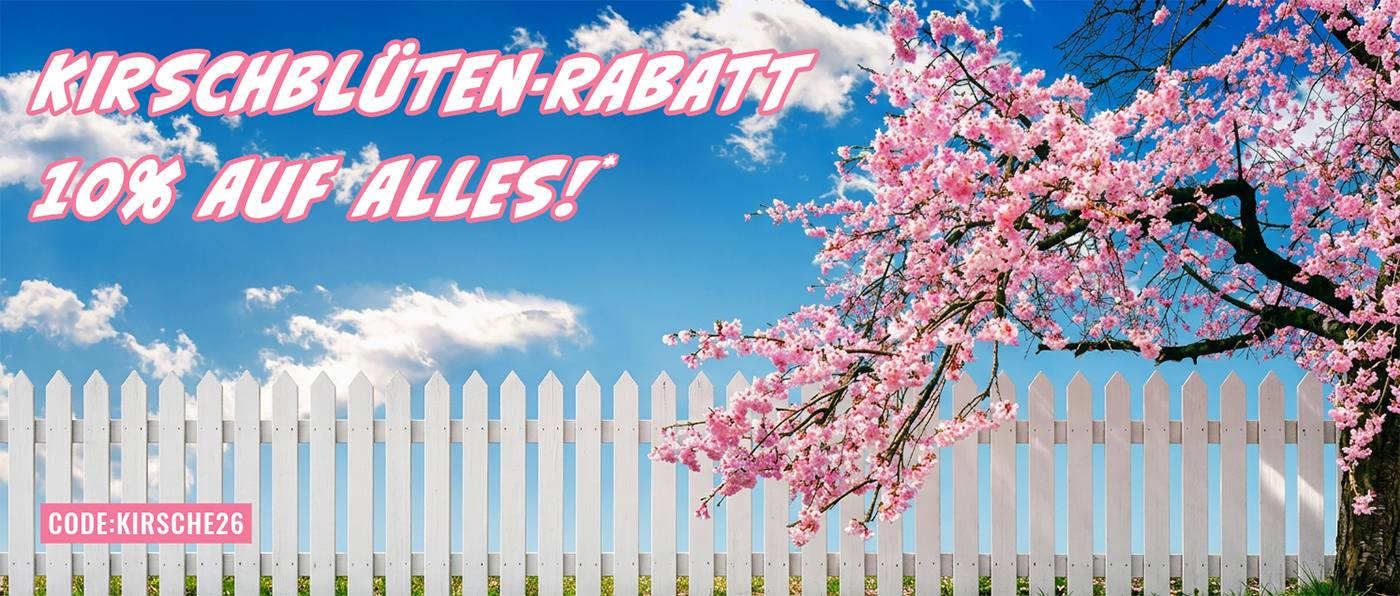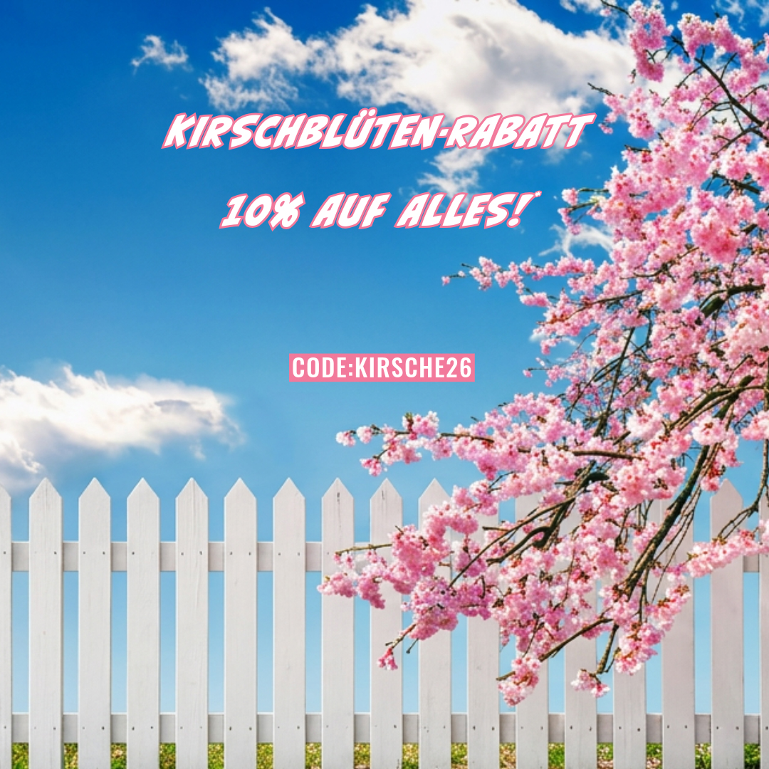 Jetzt noch bis einschließlich Montag, 20. April 2026 gibt es zusätzlichen 10% Rabatt* auf deine Bestellung. Um von diesem Rabatt zu profitieren, gib einfach den Aktionscode KIRSCHE26 im entsprechenden Feld im Warenkorb ein. Spare Jetzt mit unserer einmaligen Aktion!