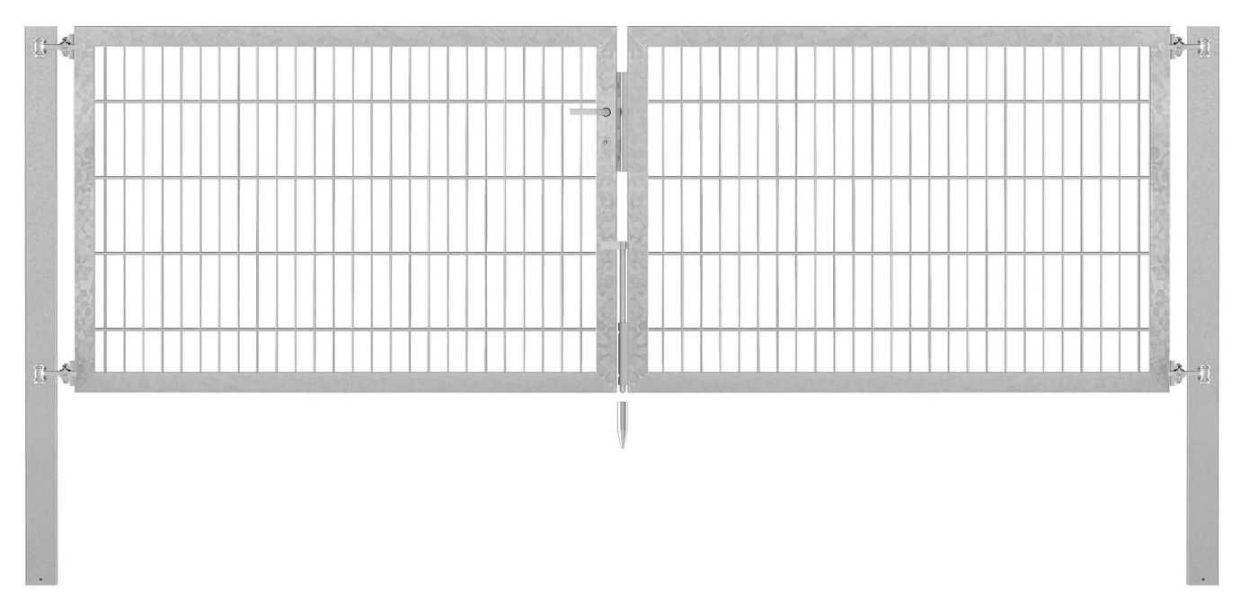 - Torflügel: 2 Flügel á 1432mm Breite, Rahmen aus Vierkantrohr 40x60mm, eingeschweißte Doppelstabmatte (Drähte Ø 8/6/8mm) mit Maschenraster ca. 50x200mm, Öffnungswinkel 180°, Montage Gehflügel wahlweise links oder rechts möglich. Toröffnung wahlweise nach innen oder außen möglich (siehe Montageanleitung unten)